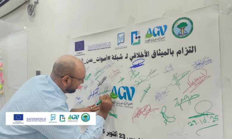 شهد المؤتمر الصحفي الخاص بالإشهار الرسمي لـ “شبكة أصوات عدن الخضراء” (AGV) حدثاً رمزياً ومحورياً تمثل في افتتاح وتوقيع “جدار الأصوات الخضراء”. هذا الجدار هو مبادرة مصاحبة جاءت للتأكيد على التعهد العلني بالالتزام بـ “الميثاق الأخلاقي” للشبكة، والذي يضمن المصداقية والمهنية في العمل البيئي.