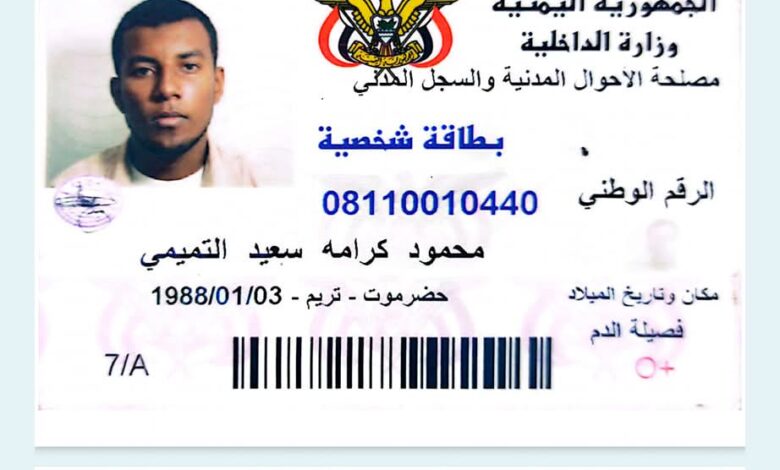 إعلان: فقدان بطائق شخصية على شاب تميمي في المكلا (صور)