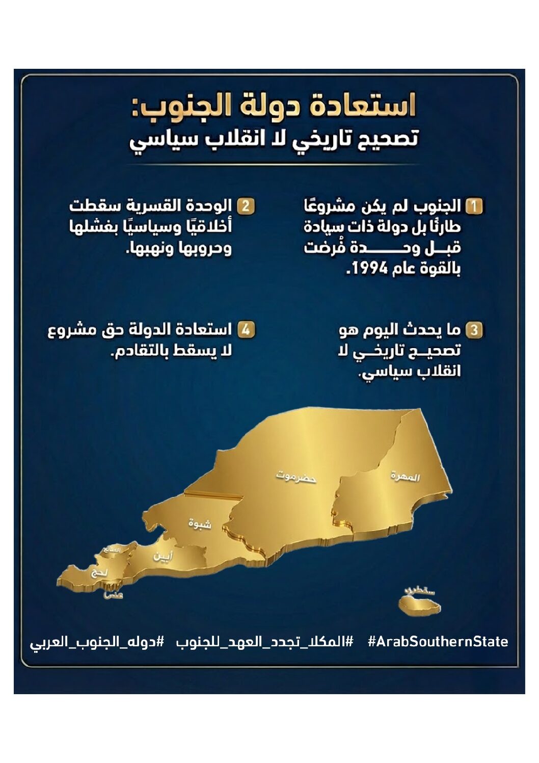 الخلاصة: دعم التحركات الجنوبية بوصفها “تفويضًا شعبيًا”ضمن هذا الإطار، يتجه الخطاب الجنوبي إلى ترسيخ فكرة مركزية: شرعية شعب الجنوب العربي هي المرجعية السياسية الأولى، وهي التي تمنح القيادة تفويضها “في الميدان”، مقابل شرعيات تُتهم بأنها فقدت معناها مع الزمن، وباتت عاجزة عن إنتاج حلول أو حماية الاستقرار.