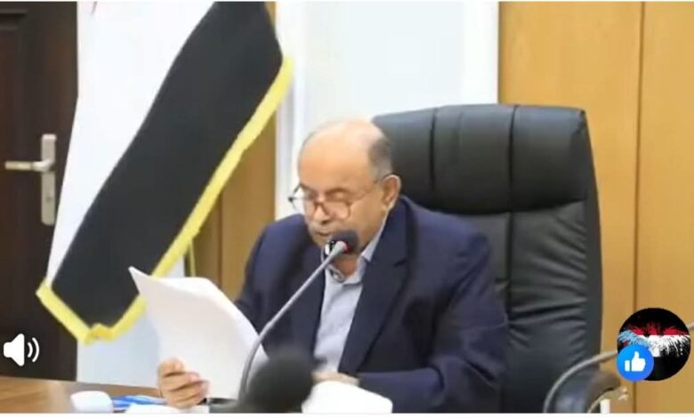 وقال الخنبشي في خطاب أمام عدد من مسؤولي السلطات المحلية بالمحافظة، اليوم، إن رفع صور الزبيدي لن يُسمح به بعد اليوم في حضرموت، مبرراً ذلك بكونه “شخصاً مطلوباً للتحقيق”، مضيفاً أن النيابة ما تزال – بحسب قوله – تجمع الأدلة تمهيداً لمحاكمته غيابياً. كما توعد بمحاسبة من يرفعون صوره، مشيراً إلى أن بعض أنصاره – وفق تعبيره – تلقوا مبالغ مالية تصل إلى خمسة آلاف دولار.