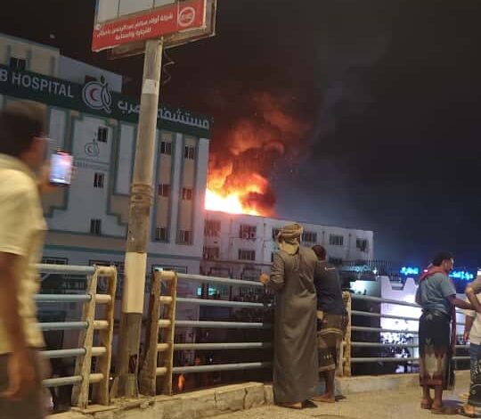 التهمت النيران الطوابق العليا في مستشفى العرب بالمكلا.