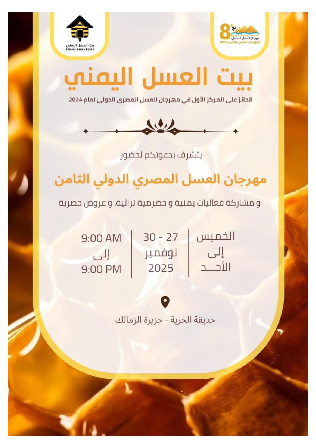 بيت العسل اليمني يشارك في مهرجان العسل المصري الدولي الثامن بالقاهرة..