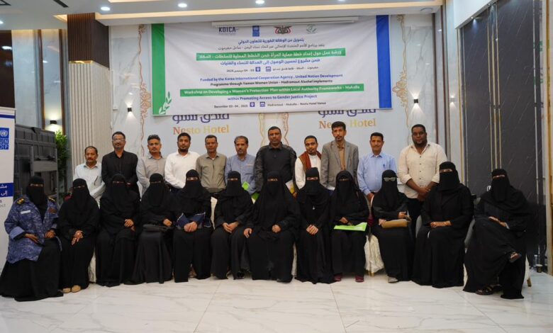اختتام ورشة عمل بالمكلا لإعداد خطة حماية المرأة ضمن الخطط المحلية للسلطات