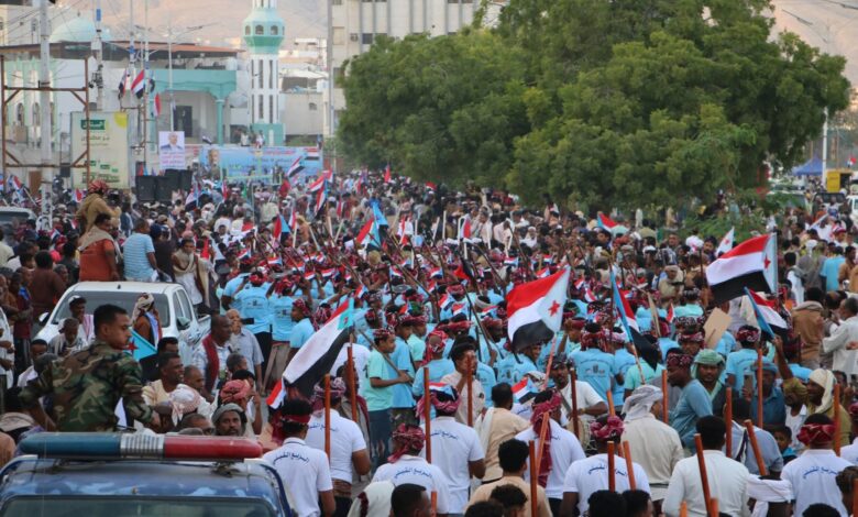 وتخللت الفعالية فقرات متعددة شملت تلاوة آيات من القرآن الكريم، وأداء النشيد الوطني الجنوبي، وفقرة شعرية عبّرت عن روح الثورة والإصرار الشعبي، قبل أن تُختتم ببيان ختامي جددت فيه الجماهير تفويضها للقيادة السياسية الجنوبية، والتأكيد على دعم القوات المسلحة الجنوبية وقوات النخبة الحضرمية، والمضي قدمًا حتى تحقيق الحرية والسيادة واستعادة دولة الجنوب العربي الاتحادية المستقلة كاملة السيادة.