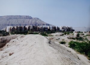 ومن صنعاء إلى مدينة شبام، التي تبدو في صورتها الملتقطة في فبراير 2008م بواجهتها الشمالية المطلة على أراضي «الجروب» المروية بالسيول، وجدرانها الطينية العريضة المعروفة بـ«الأسوام». كما يظهر جبل الخُبّة المواجه للجهة الجنوبية للمدينة، مشرفًا على سحيل شبام ومجرى السيول «البطحاء»، في مشهدٍ يجسد عبقرية المكان وتاريخ العمارة الطينية في حضرموت.