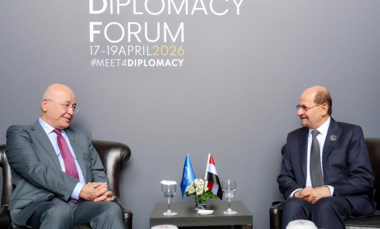 بحث رئيس مجلس الوزراء وزير الخارجية وشؤون المغتربين، الدكتور شائع محسن الزنداني، اليوم، مع وزير خارجية جمهورية أذربيجان جيهون بيرموف، سبل تعزيز العلاقات الثنائية والتنسيق المشترك في القضايا الدولية، وذلك على هامش منتدى أنطاليا الدبلوماسي.